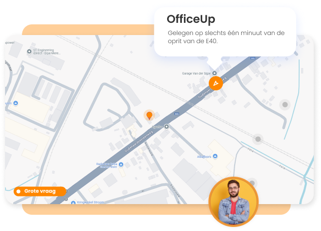 Dankzij de ligging bij de E40 en uitstekende OV-verbindingen is OfficeUp eenvoudig bereikbaar.